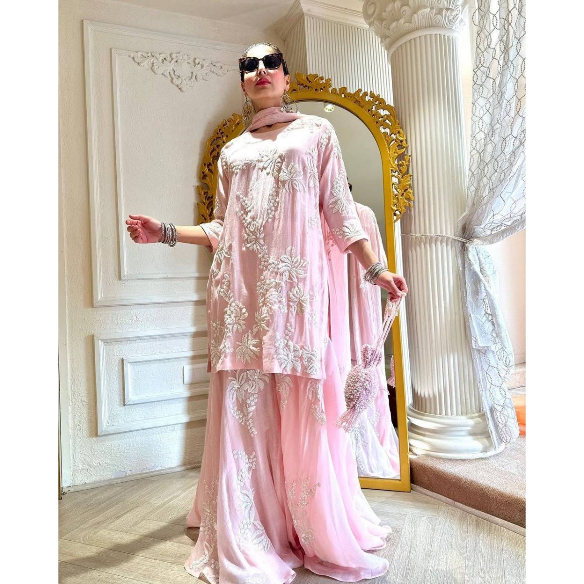 Baby pink color designer sharara suit