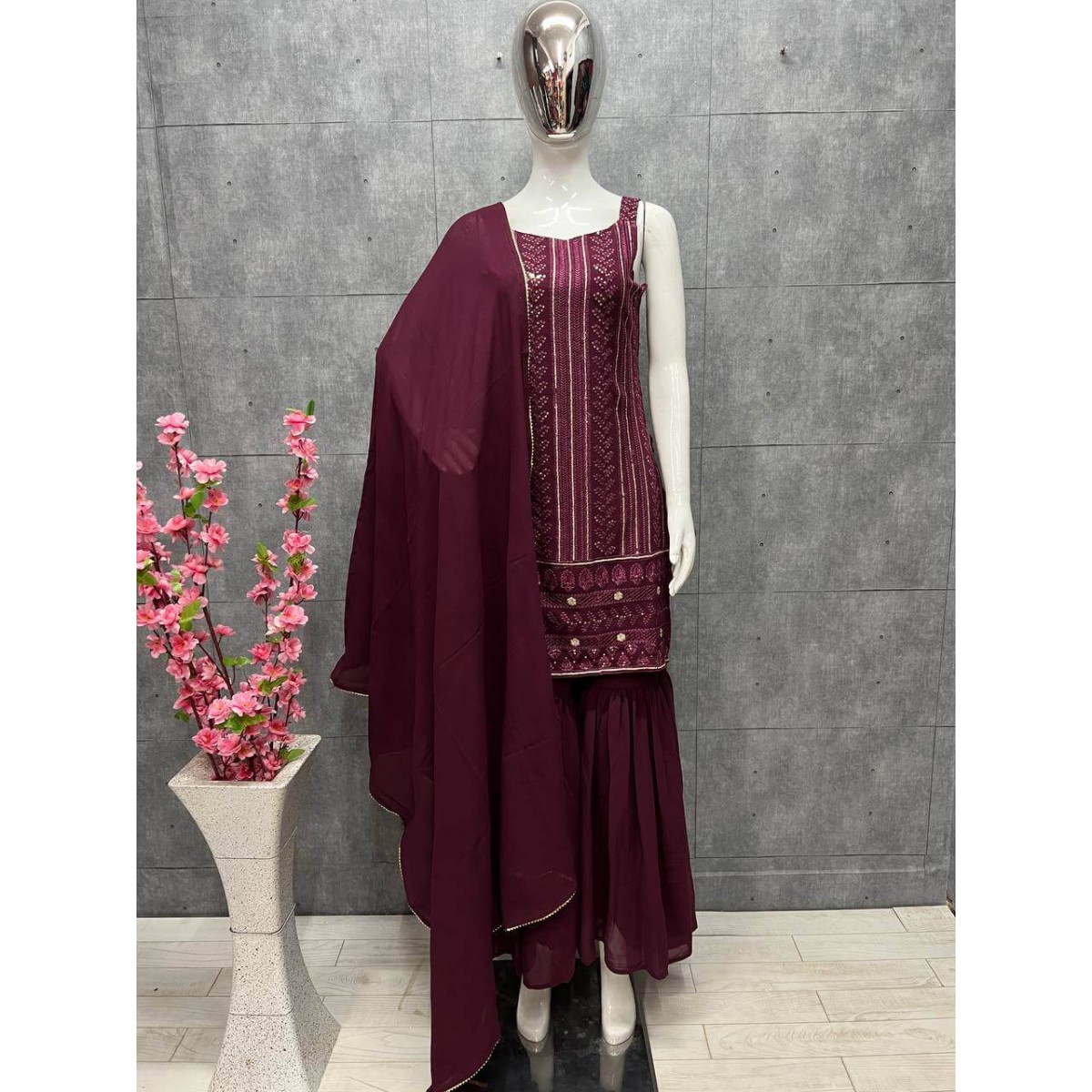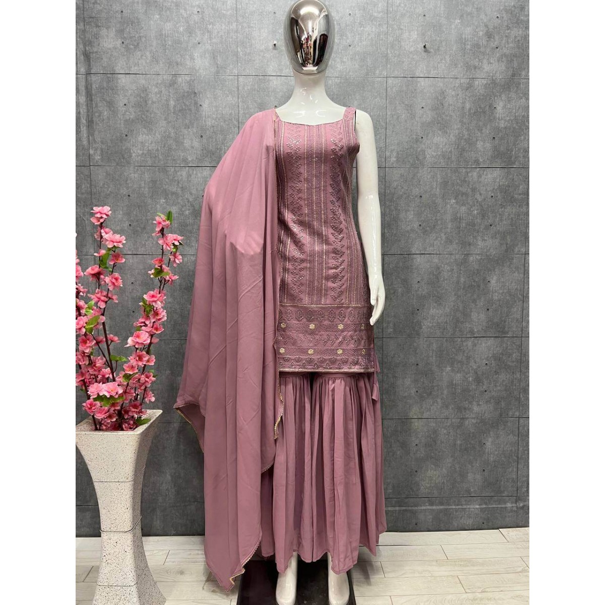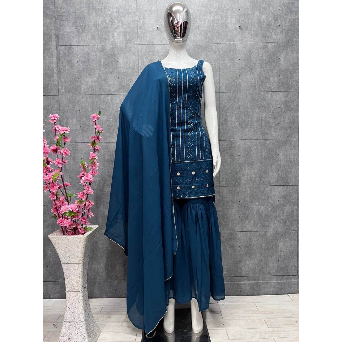 • SHARARA FABRIC: HEAVY PURE SOFT GEORGETTE FABRIC AND INNER MICRO COTTON FULLY STITCHED LENGTH 40