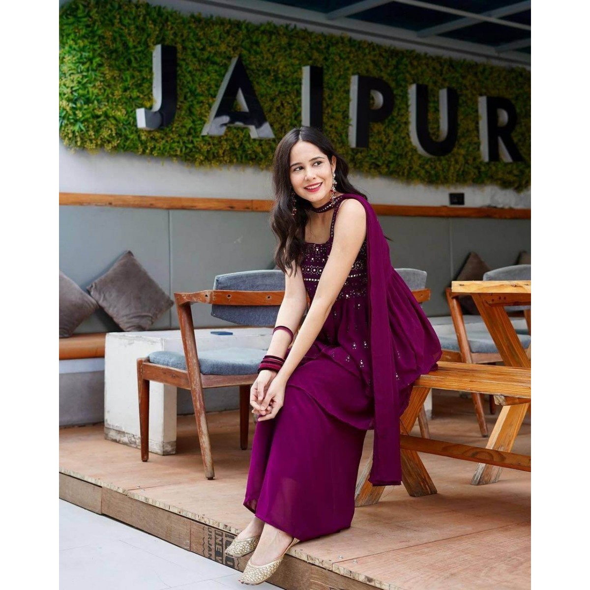 Wine color designer palazzo suit