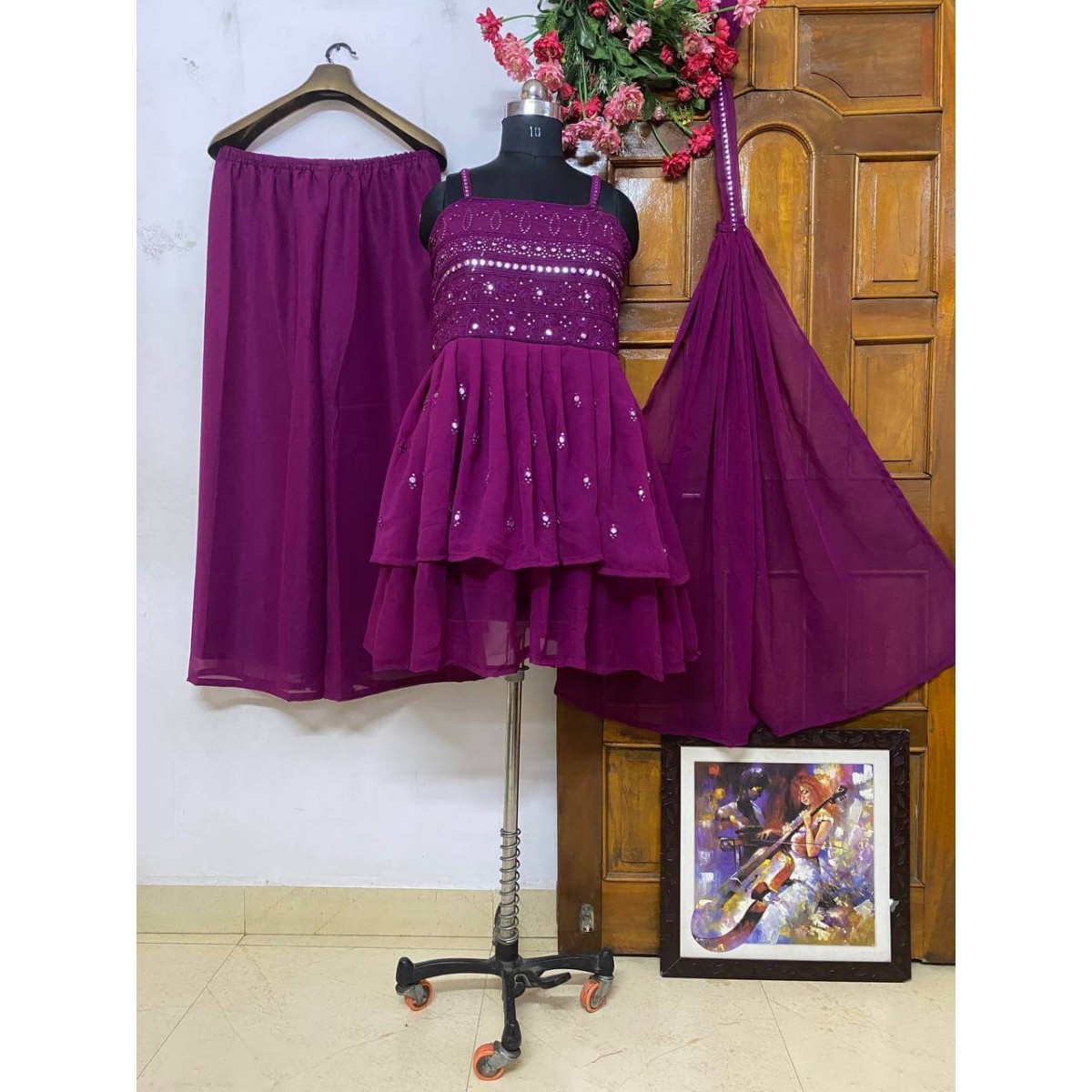 •  GEORGETTE TOP WITH BEAUTIFUL FULLY EMBROIDERED &  GEORGETTE PLAZZO