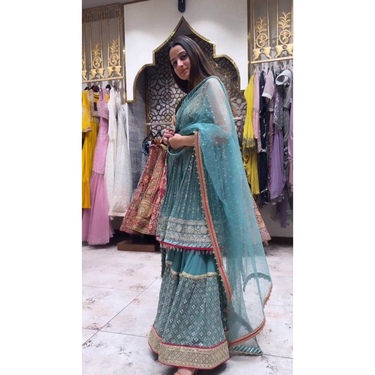 • Top fabric heavy quality Georgette with cotton linning full stitched with embroidery and sequence work with sleeve cloth