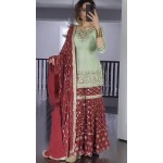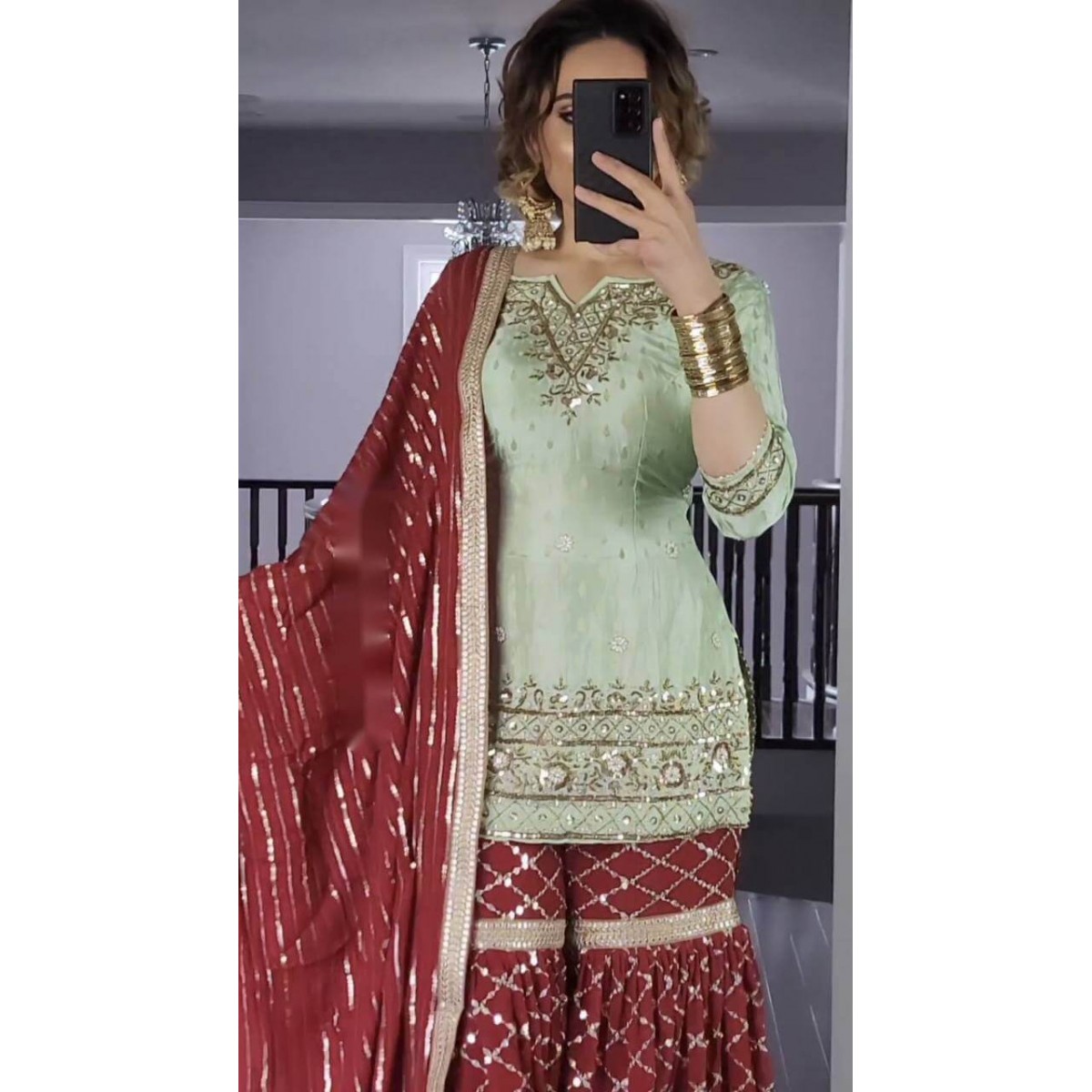 • Plazzo Fabrics :Heavy Faux Georgette With 5mm Embroidery Sequence Work With Fully Flair