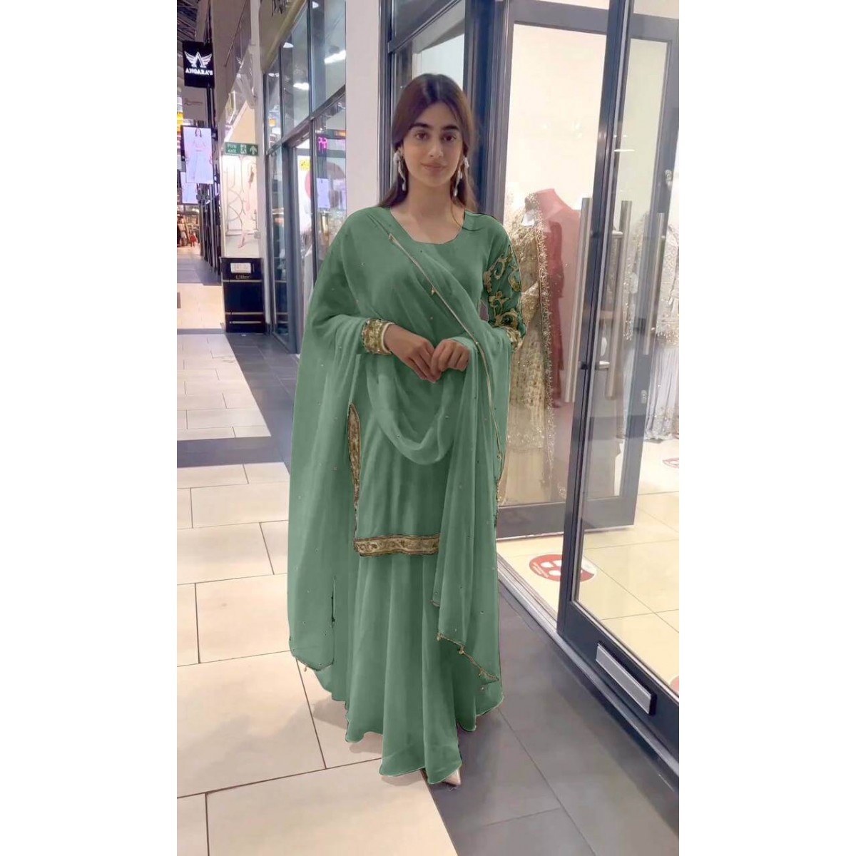 • Dupatta Fabrics :Faux Georgette With Rivet Moti Work Four Side Readymade lace Border