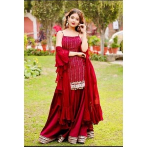 Royal Blue Butti Stylish Wedding Gown and Dupatta Gown Fabric Taffeta Silk Fully Stitched, Gown Leng..