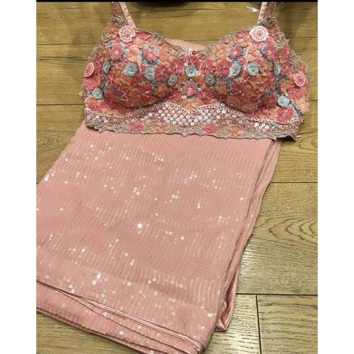 • Looking some one for this same colour beautiful Designer Saree on Faux Georgette febric with 5Mm Sequnce work and blouse on faux Georgette febric with Thred and Sequnce work.
