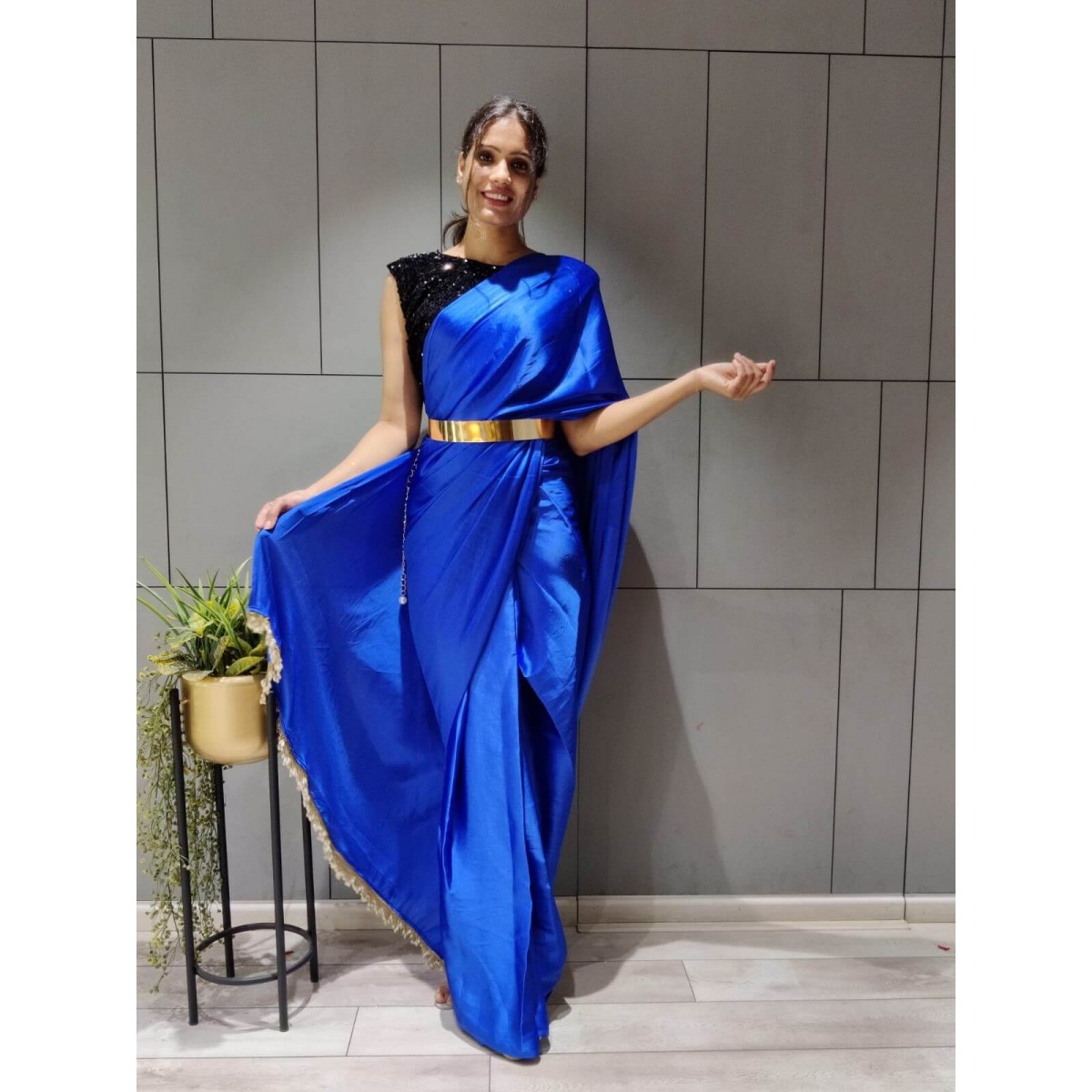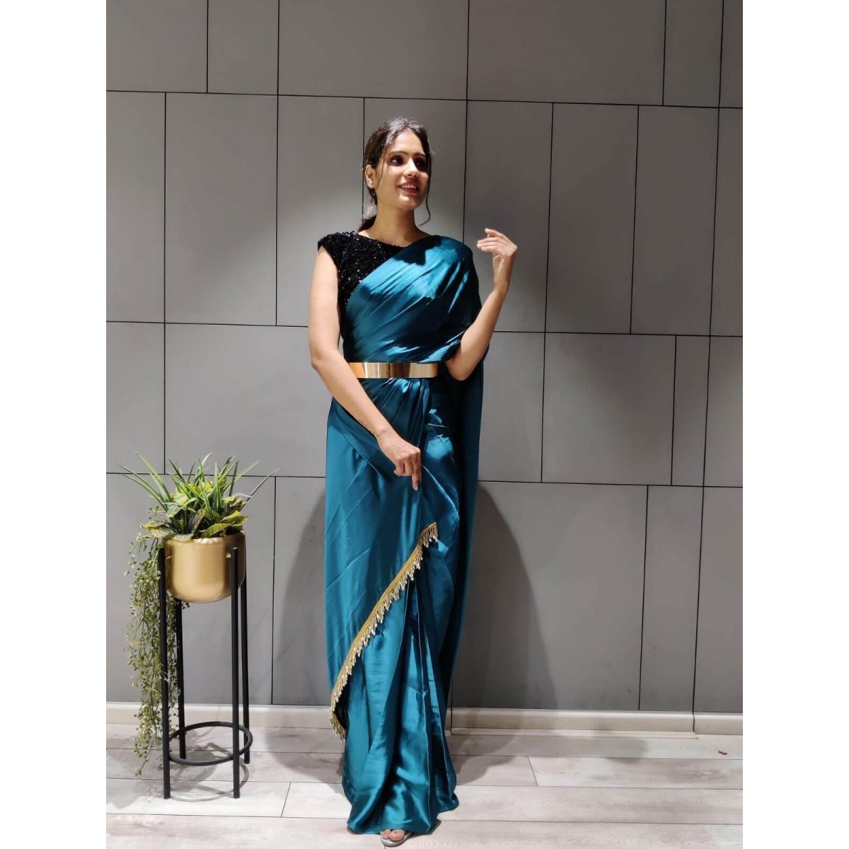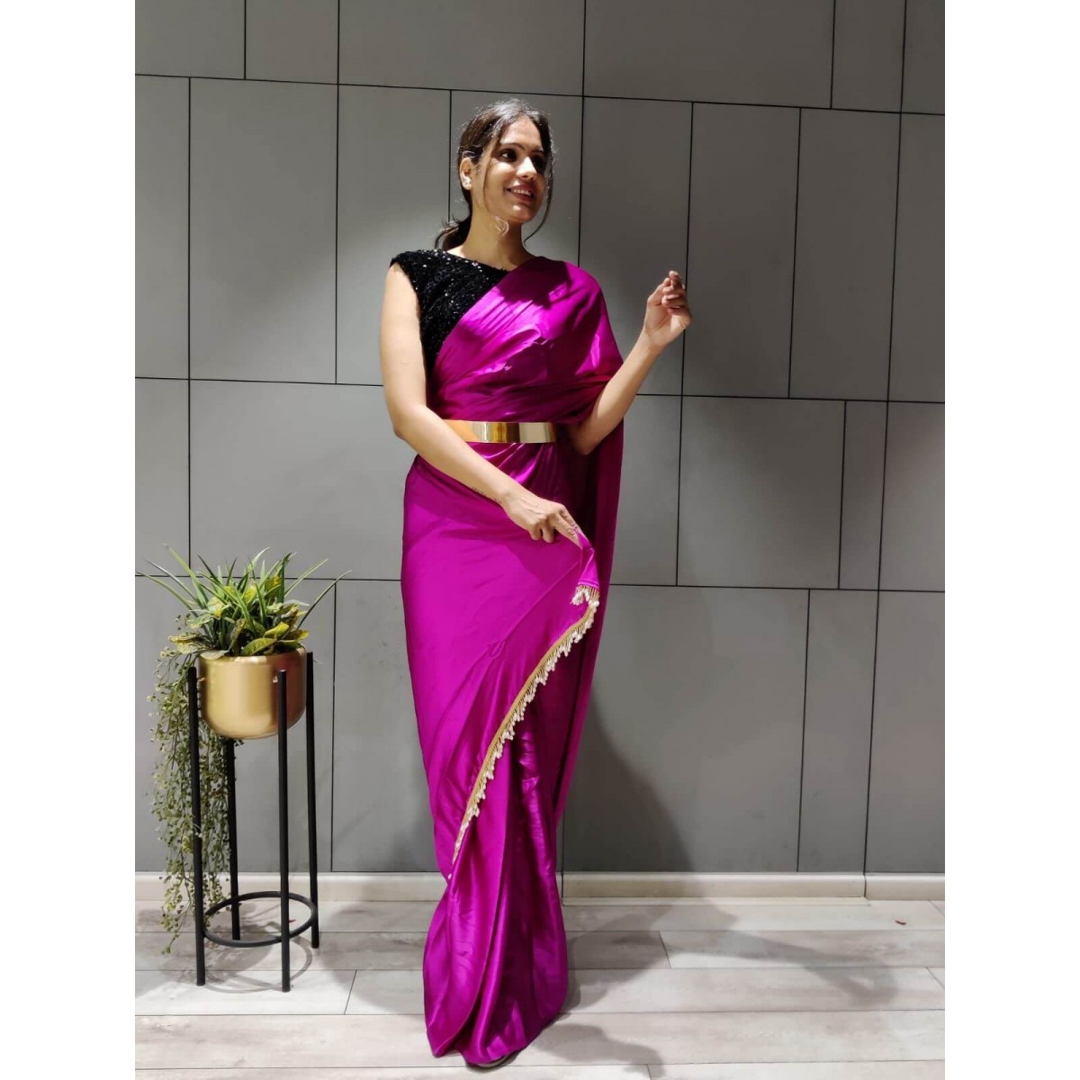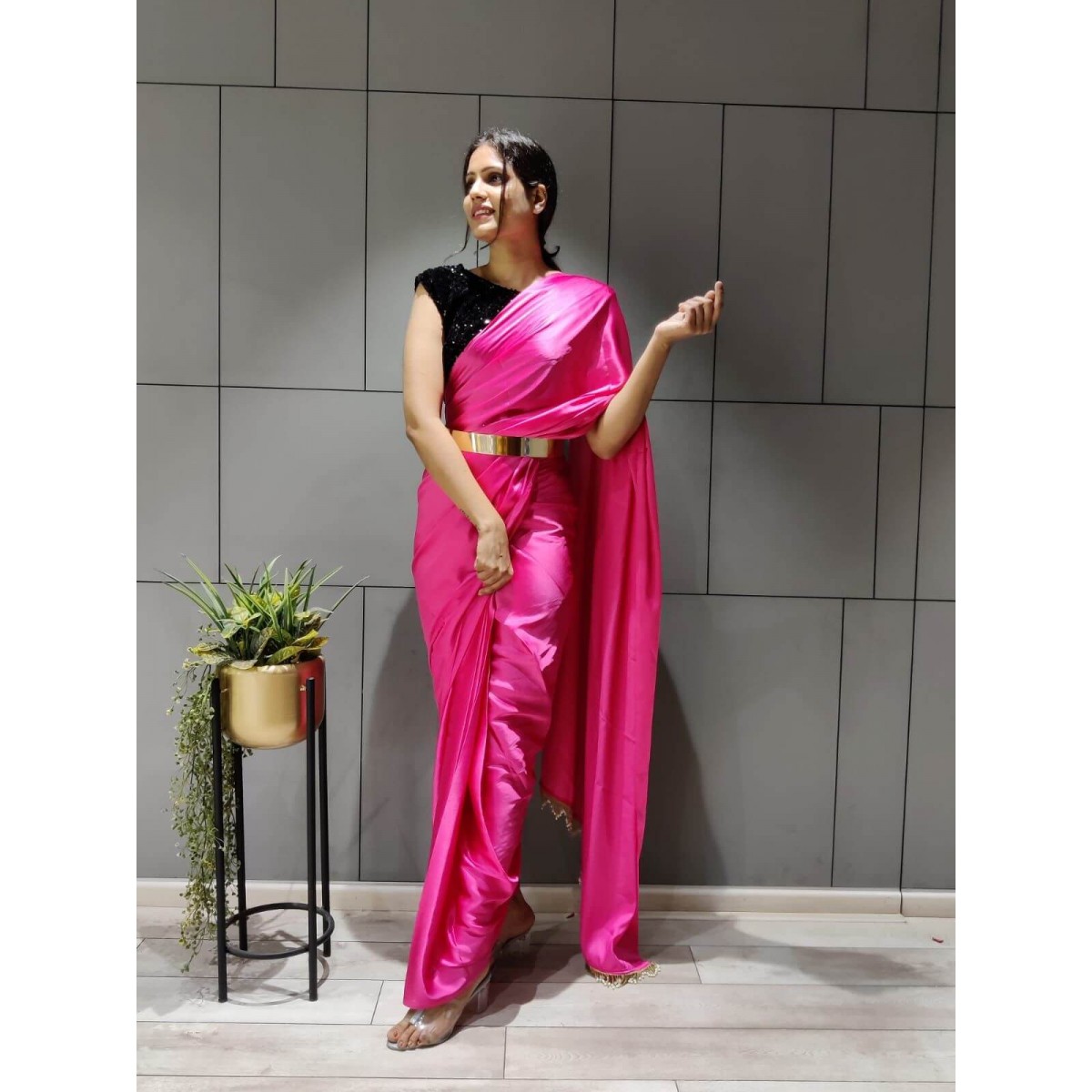 One min satin silk ready to wear saree