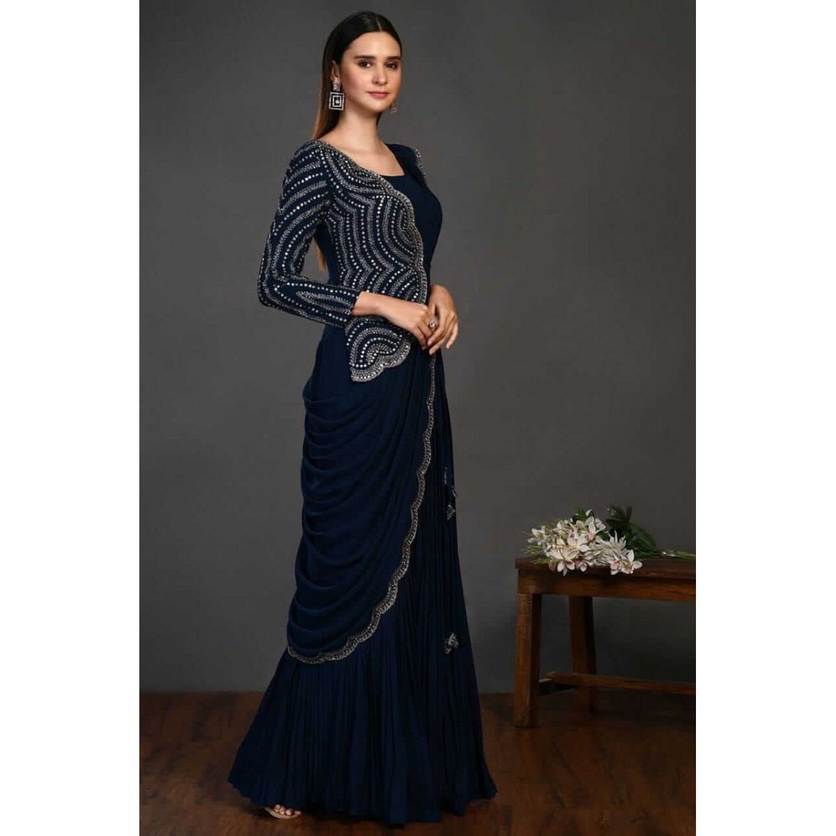 Royal Blue Butti Stylish Wedding Gown and Dupatta Gown Fabric Taffeta Silk Fully Stitched, Gown Leng..