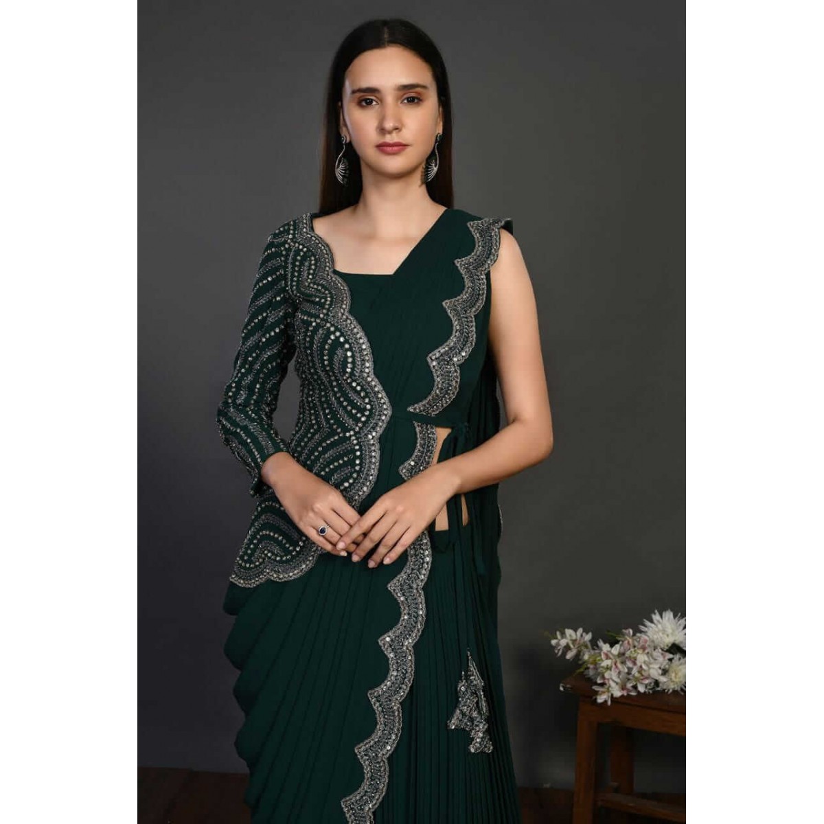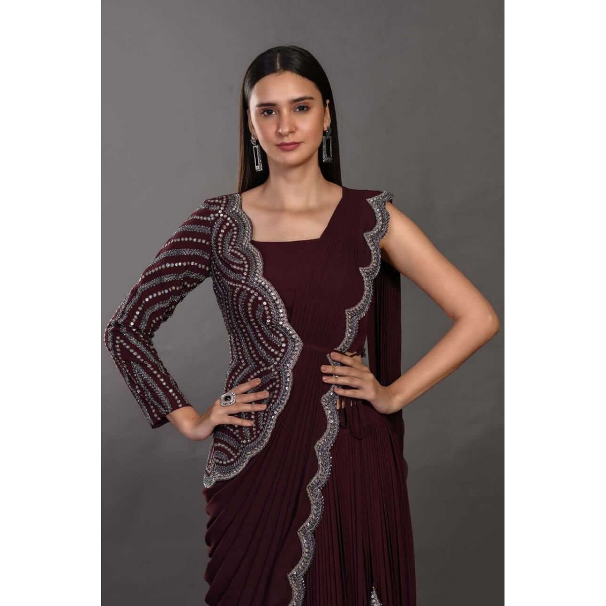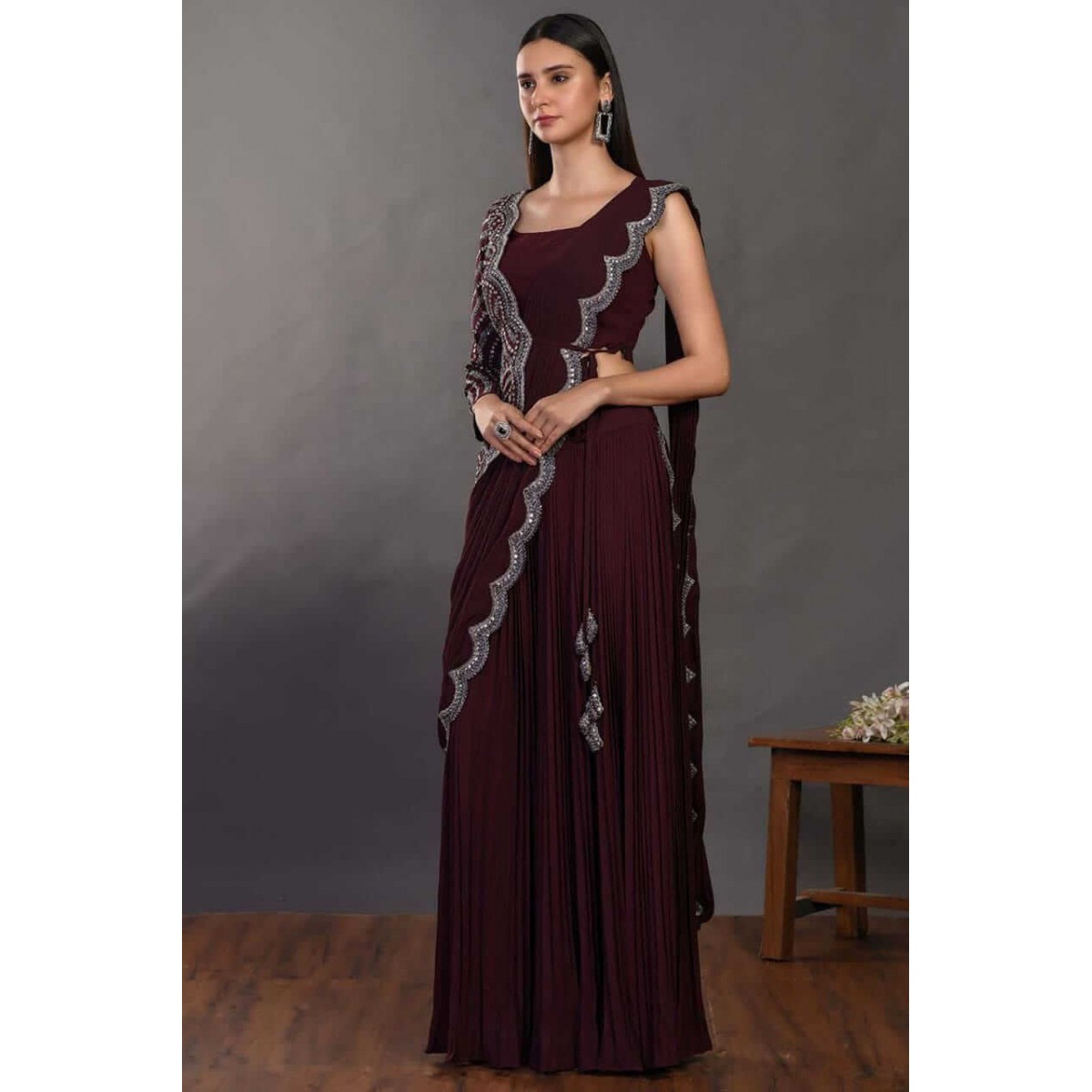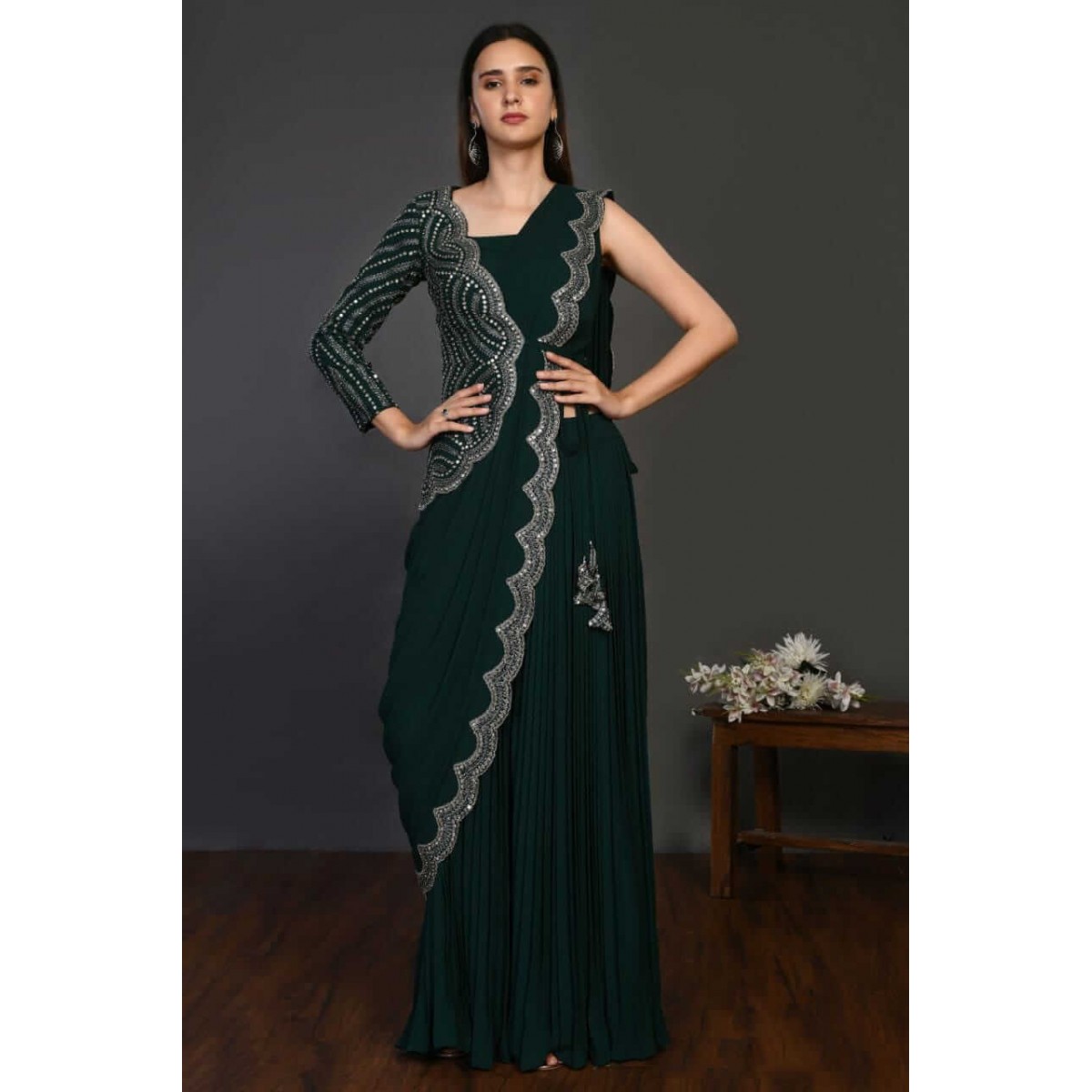 • New Super Trending Embroidery cording work ready to wear Palazzo saree with haf koti